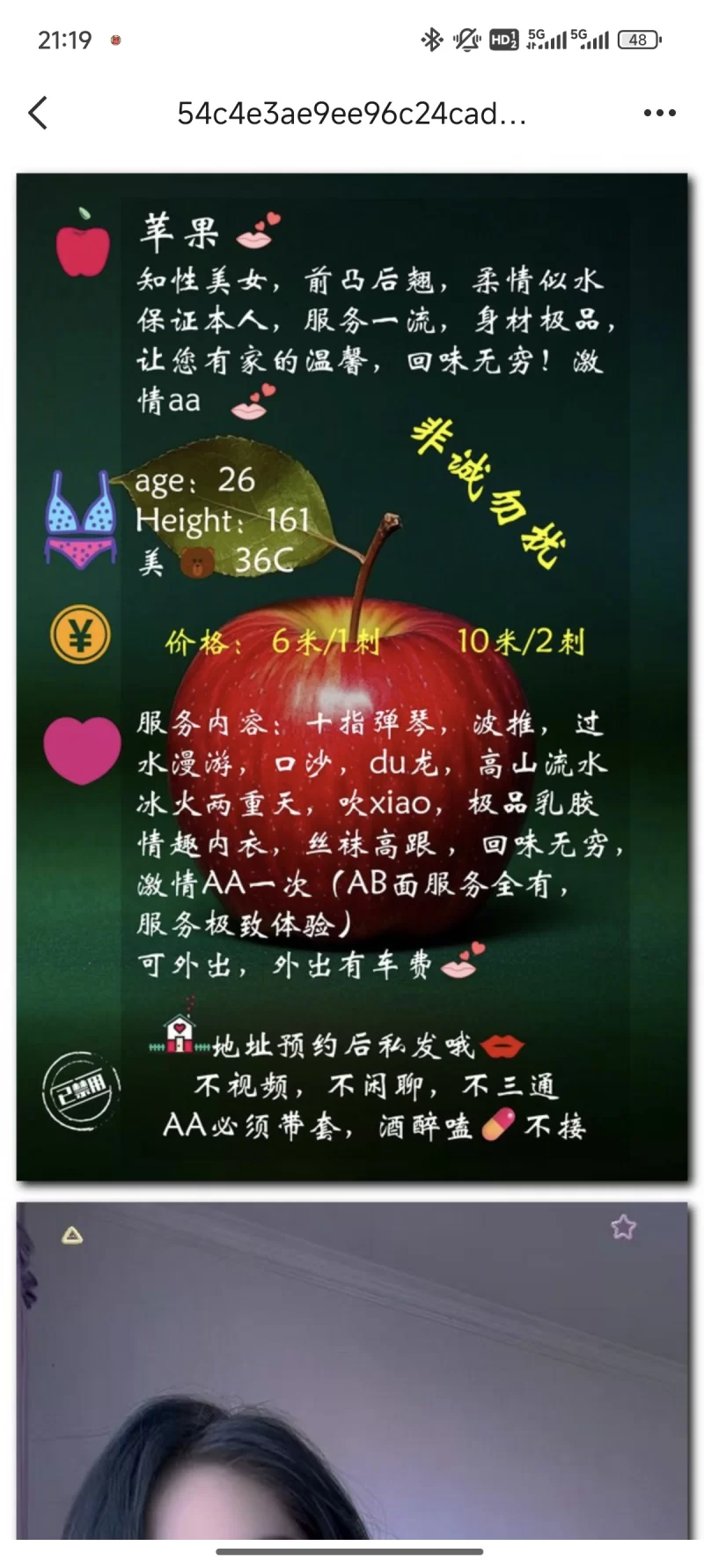 到了拍照发楼层号,妹子会问你合不合适,颜值是有的是我喜欢的类型,合适后给你拿鞋洗澡就开始了,服务没话讲,属于兼职吧,白天要上班不好容易才约上,没有人催,她自己也不着急,不喜欢那种做一会就催的,一下子心情就没了,挺健谈的,像约会小情人一样